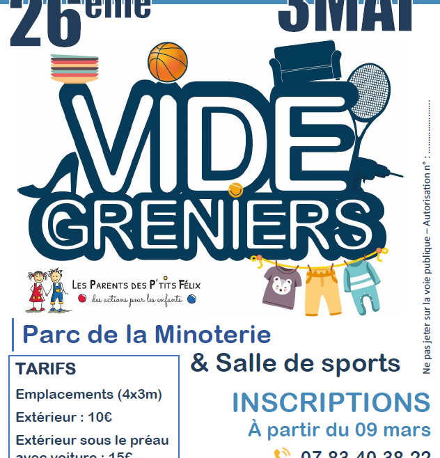 https://ppf.ecolebouvron.org/wp-content/uploads/sites/2/2026/03/Capture-decran-2026-03-05-183210-1.png 632 892 Parents des P'tits Félix Parents des P'tits Félix https://ppf.ecolebouvron.org/wp-content/uploads/sites/2/2026/03/Capture-decran-2026-03-05-183210-1.pngLes Parents des P’tits Felix organisent leur traditionnel Vide Grenier le dimanche 3 mai 2026 à Bouvron, au parc de la Minoterie et Complexe sportif de la Vigne. Réservé aux particuliers, il rassemble chaque année environ 220 exposants accueillis à partir de 7h30 et des visiteurs à partir de 9h, jusqu’à 18h. Prix des emplacements (4 m x…